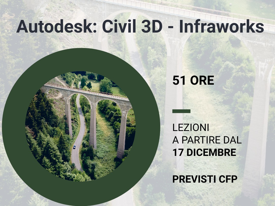 Richiesta informazioni per il corso AUTODESK CIVIL 3D – INFRAWORKS – FAD Sincrona – 2a edizione – (Pagamento rateizzato clicca su “chiedi maggiori informazioni”)